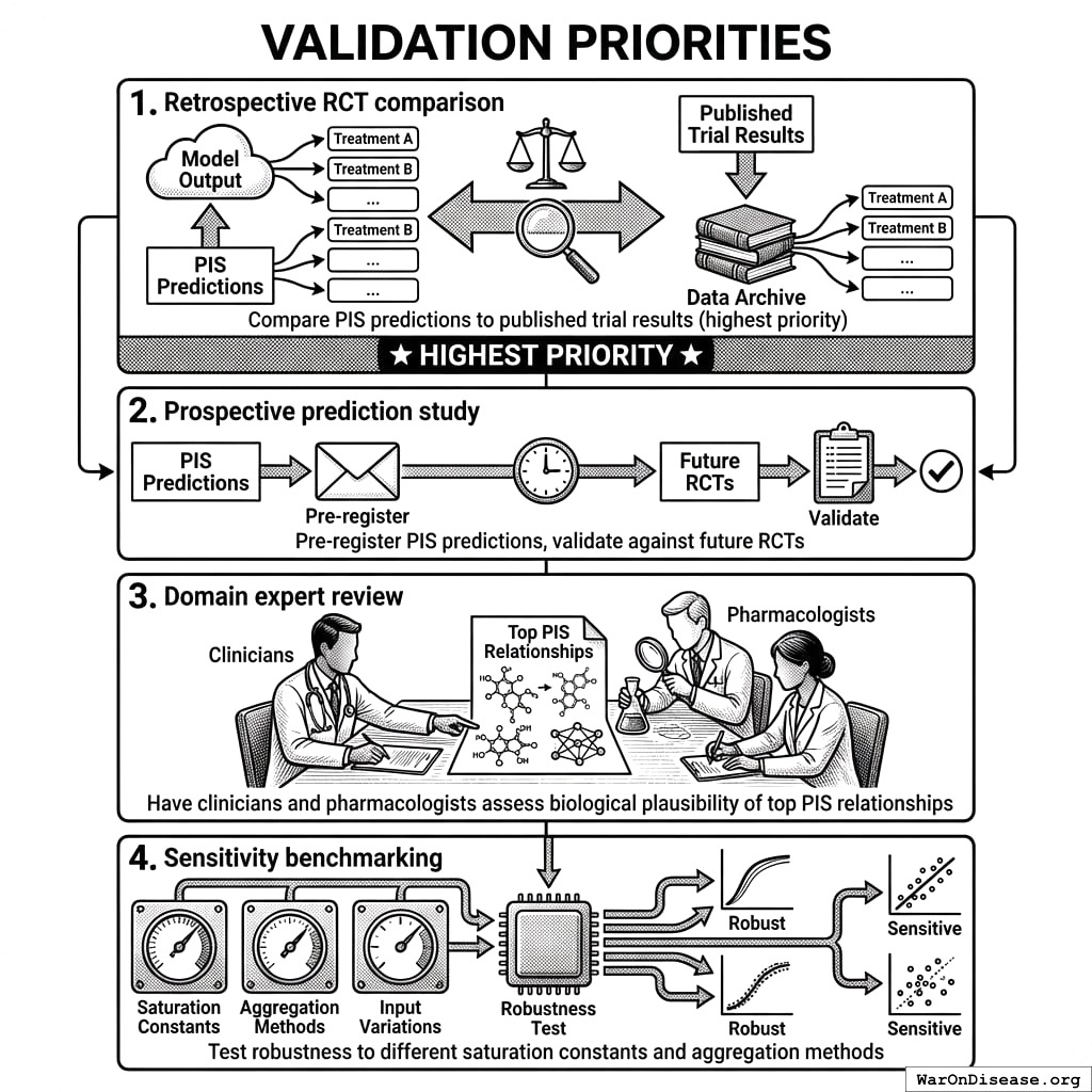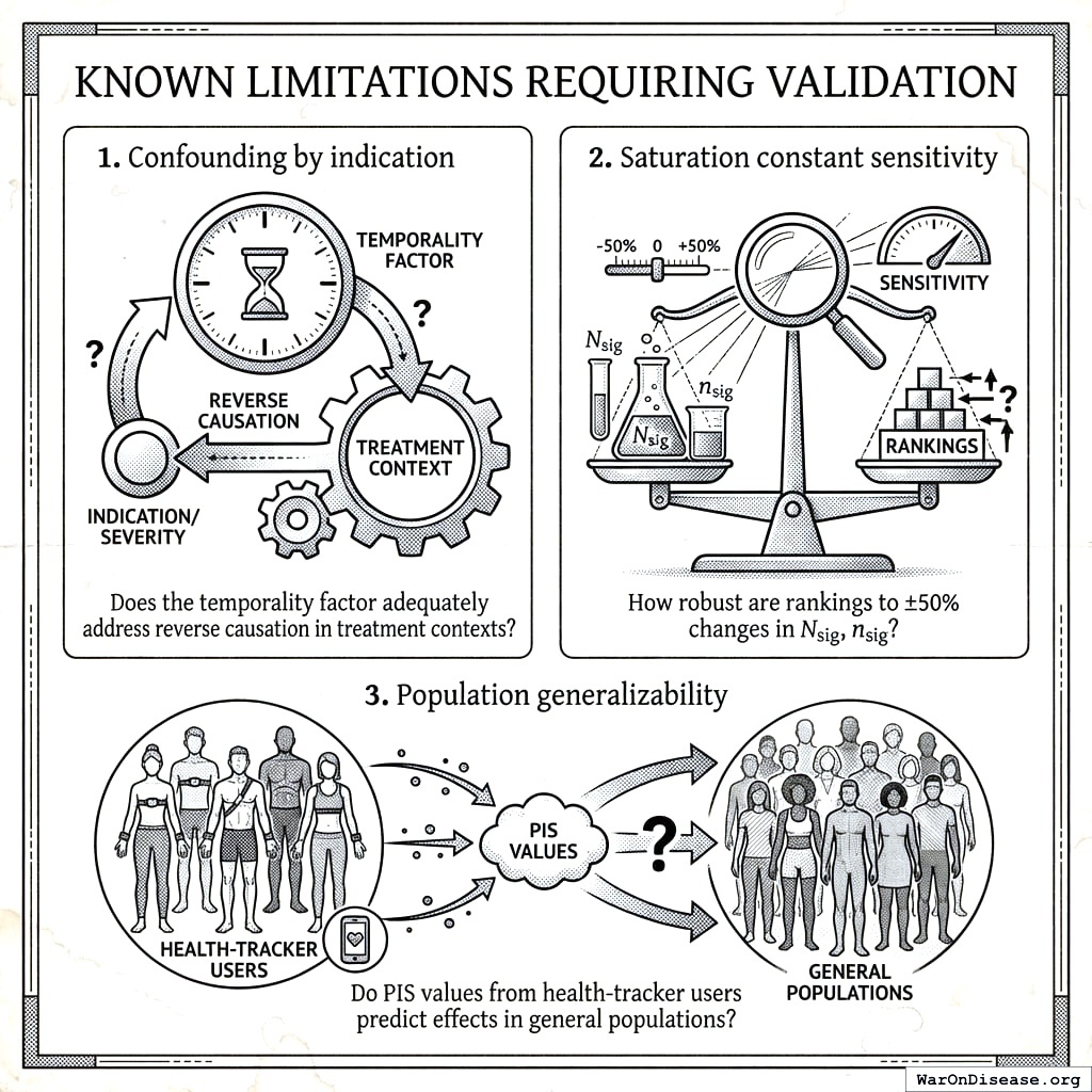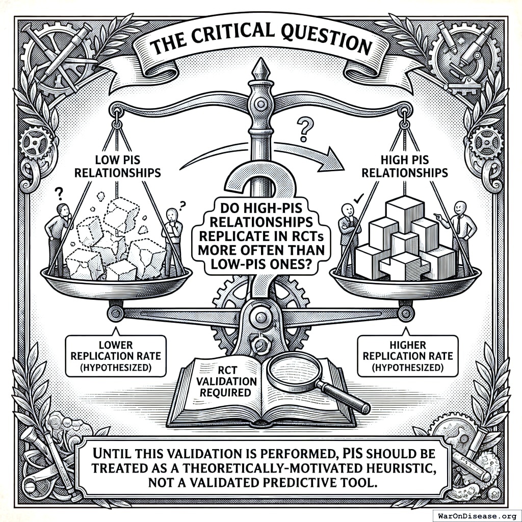 High PIS signals warrant experimental investigation; low PIS does not rule out true effects. This framework complements traditional RCTs. Stage 2 pragmatic trials are required to establish validated causal claims.